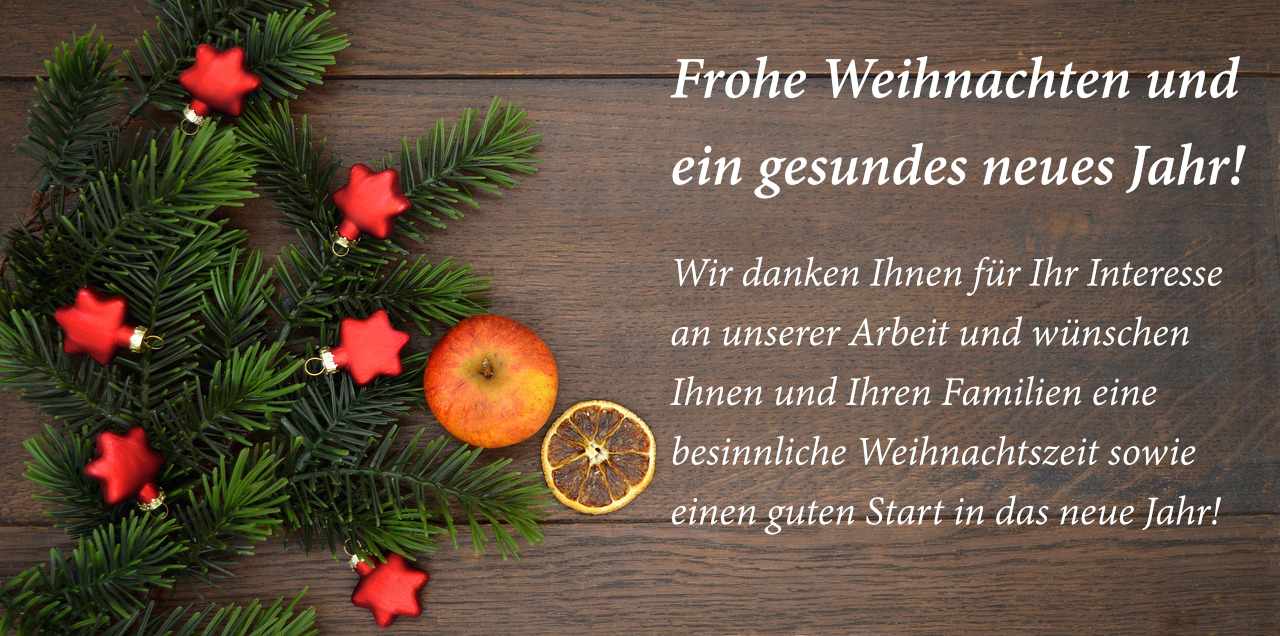 Ab dem 02.01.2026 stehen wir Ihnen gerne wieder zu den gewohnten Zeiten telefonisch und per Mail zur Verfügung.